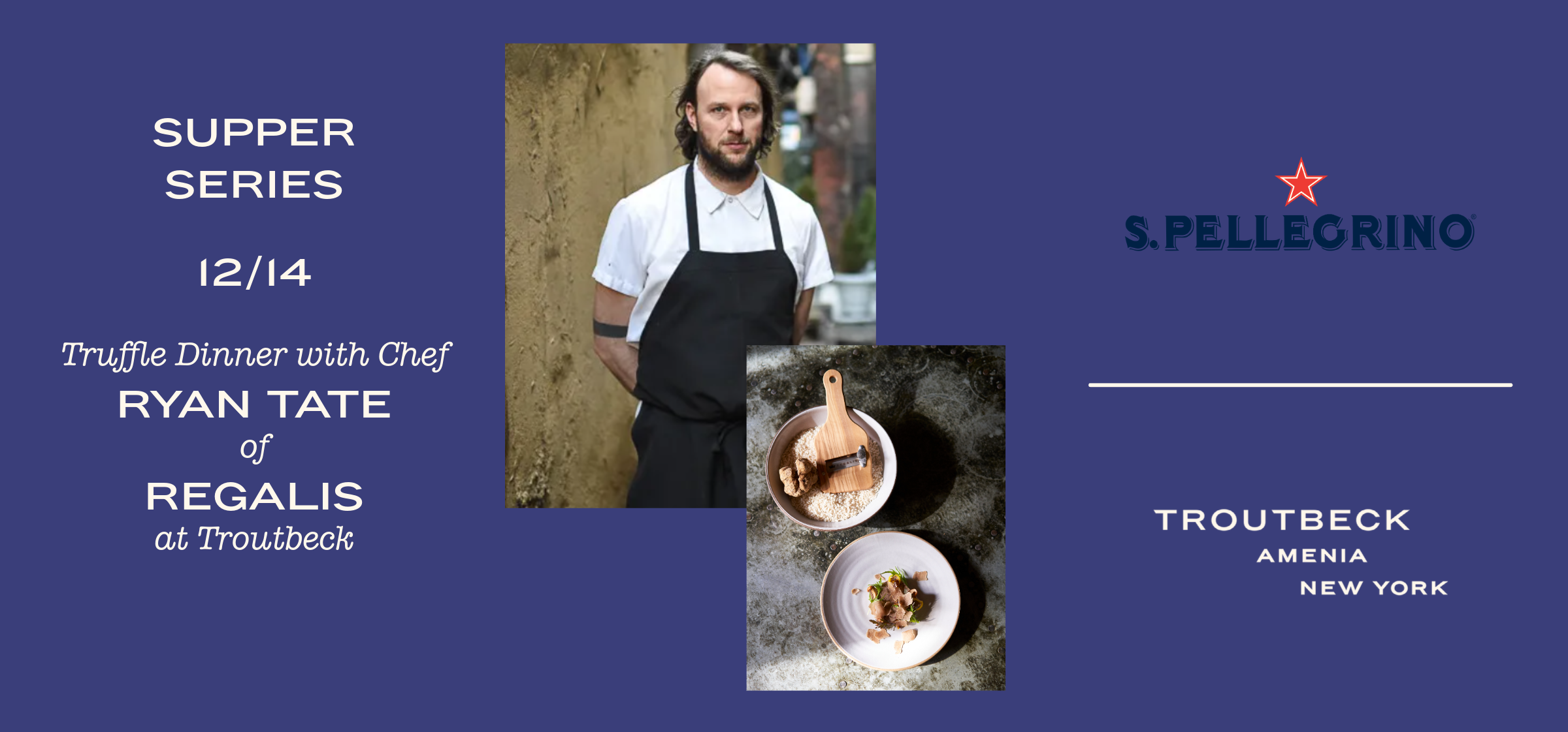 Recipient of a Michelin Star within six months of opening at Manhattan's Le Restaurant and a two-star New York Times restaurant review for his seasonal modern American cooking at SoHo staple, Savoy — Chef Ryan Tate joins Executive Chef Vincent Gilberti at Troutbeck for a festive and decadent dinner as an ode to White Alba Truffles for one night only.