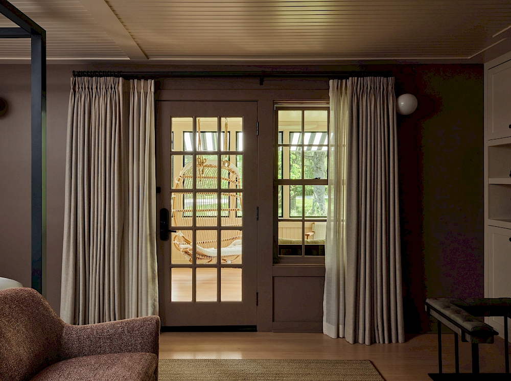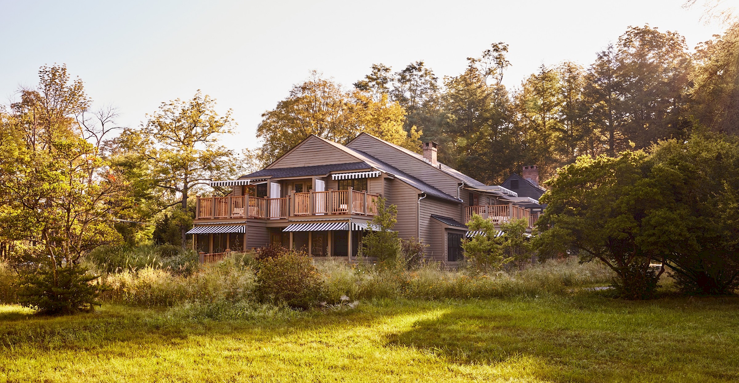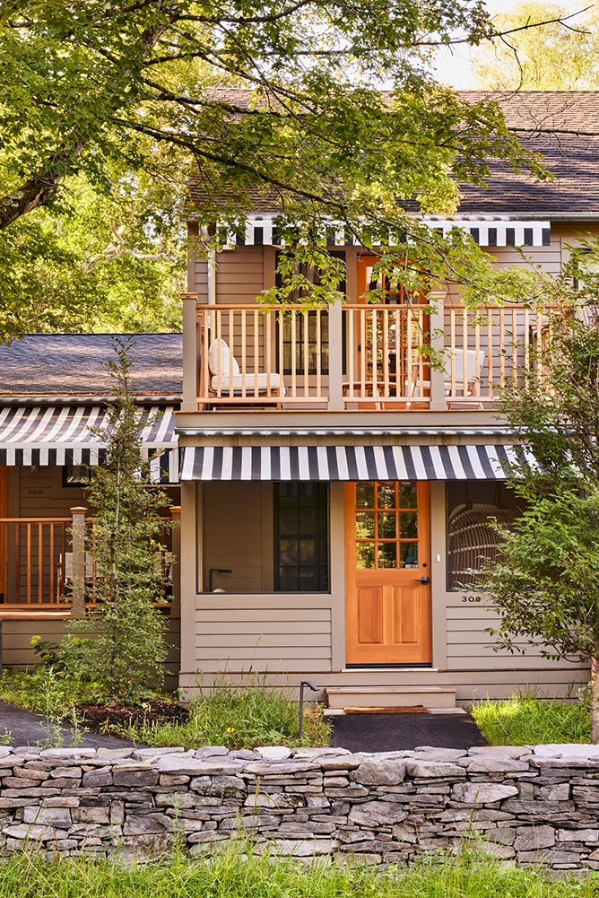 Situated at a bend in the Webatuck River amongst the wild flowers and willows of our meadows, a short walk over the stone bridge to the Manor House, Benton House is freshly renovated and inviting. Comfortably appointed screened porches serve as fresh-air living rooms in summertime, as non-heated sunrooms in winter time and offer private access to six individual ground floor guestrooms.