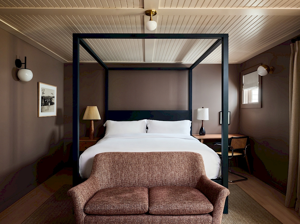 - A king-sized four post bed dressed in Frette bedding