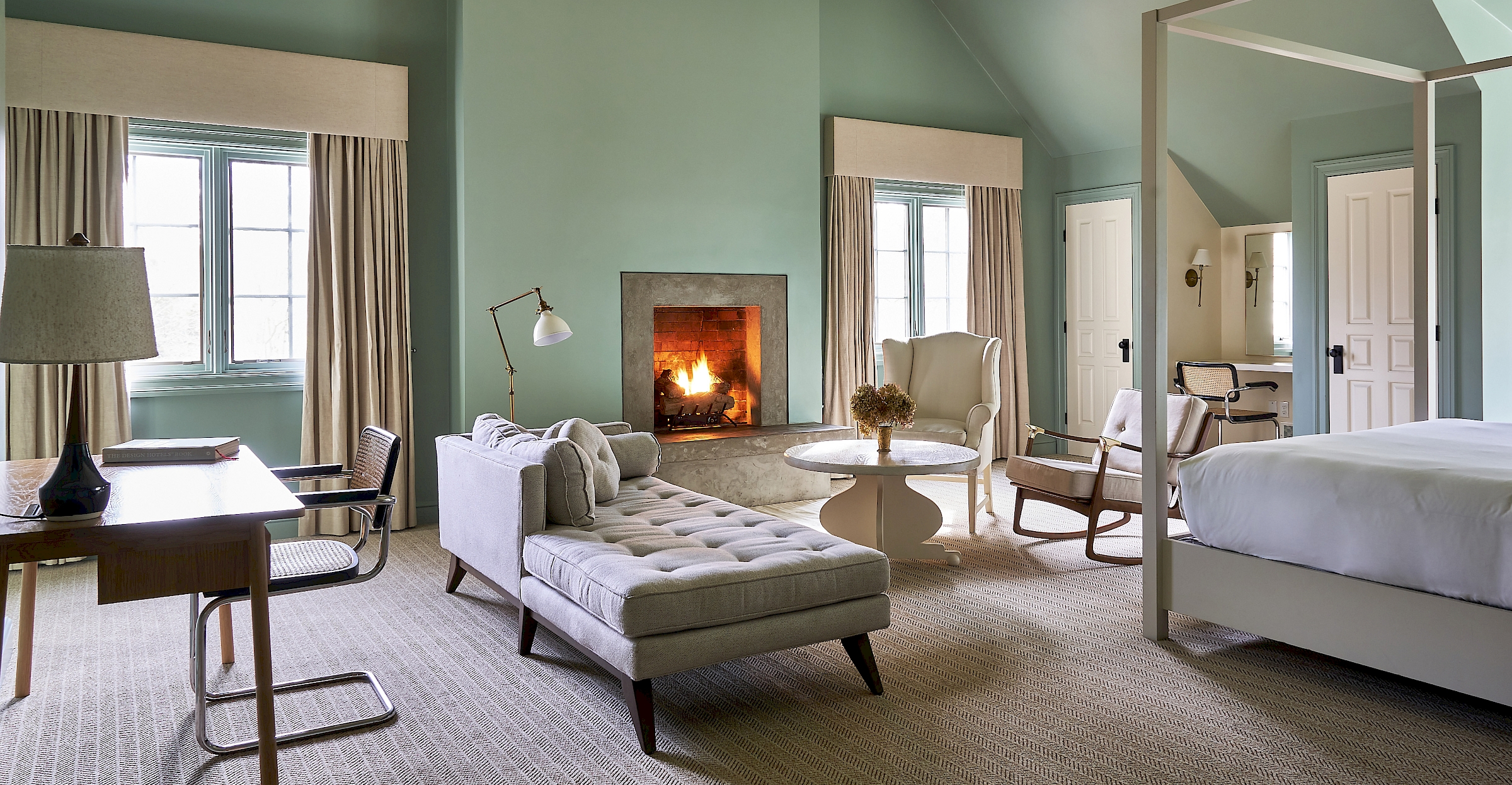 The suite also has a writing desk and a mirrored vanity.