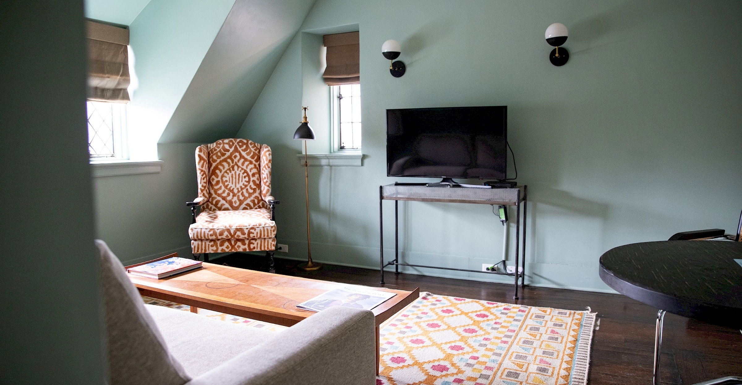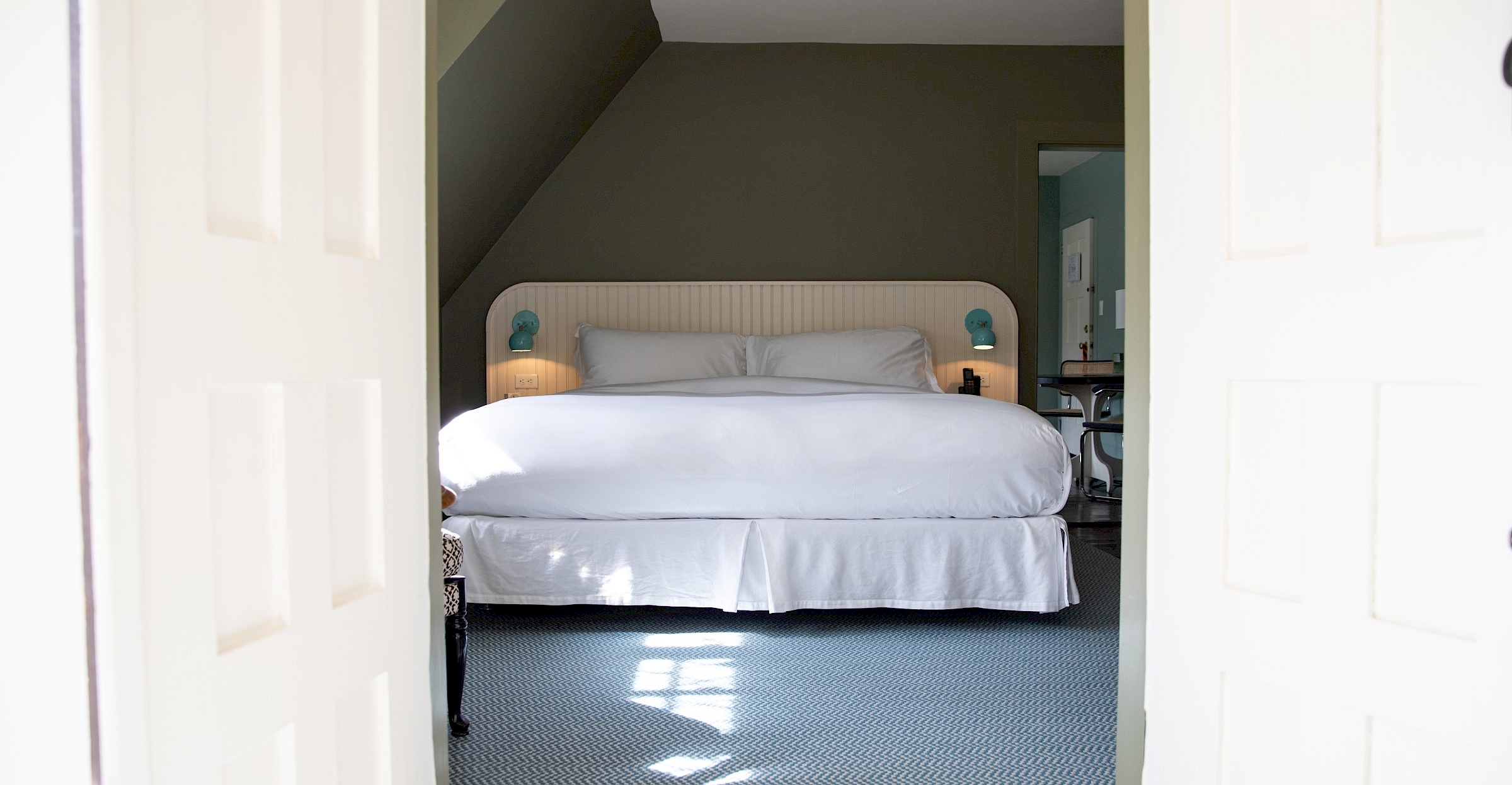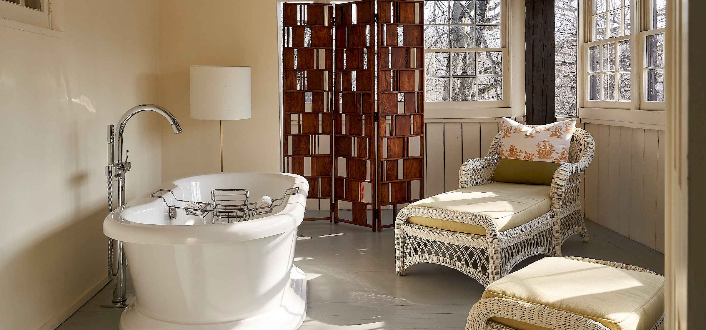 Located in the historic wing of Manor House, overlooking Dunham Creek and our noble sycamores. This playfully romantic three-room suite includes a living room with a convertible sofa, coffee table, a table and chairs for in-room dining or work, Nespresso Machine and Tivoli Audio stereo with Bluetooth. The bedroom connects to a spacious bathroom and a former sleeping porch that now has a chaise and a free-standing soaking tub, basked in natural light.