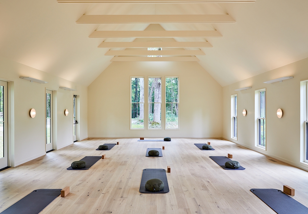 The Barns – newly constructed and opened in 2021 – offer a full range of Wellness services and amenities. Studio classes are held in the 1,250-square-foot Tall Barn. The reception, gym, treatment rooms, changing rooms and saunas can be found in the Long Barn. We often hold studio classes in the Pole Barn, a seasonal space.