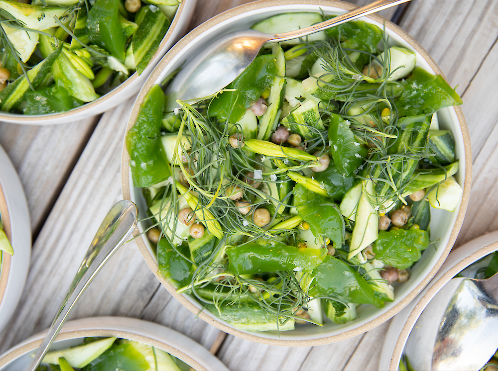 Stonewood Farm Green Salad with Burnt Harlem Valley Homestead Cucumbers